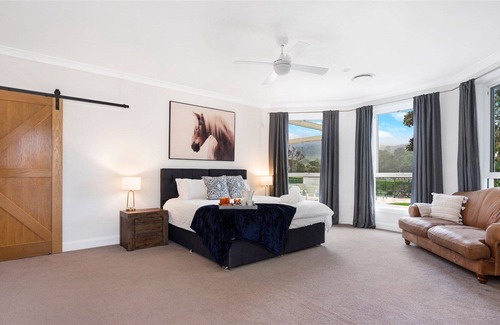 Cowley House is a beautiful country residence located at the foothills of the Illawarra escarpment. It is a fantastic getaway offering spacious accommodation, mesmerising views, a stunning saltwater swimming pool and entertaining facilities. Cowley House is a beautifully styled 6-bedroom home (plus separate cottage) with ample space comfortably sleeping 14 guests and decorated in gorgeous Hamptons style and only 90 minutes south of Sydney CBD and 19 minutes to Wollongong.