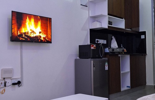 • Fully Equipped Kitchen with all the essentials including a fridge, water dispenser, microwave, and kettle to make your stay feel like home.