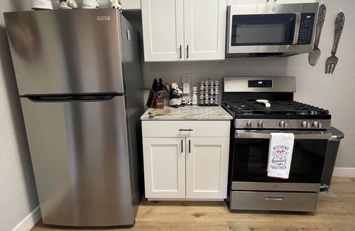 Welcome to this charming apartment in Porterville. Close to all the facilities, we are three minutes from Sierra View Hospital. Also, we provide a back gated yard to park work trucks, Boats, RVs etc.This marvelous rental features 1 soothing bedroom with a queen bed, living room with a queen size cozy sofa bed, a well equipped kitchen with a dining area, patio area and a bathroom equipped with a shower and hair dryer. Guests can enjoy amenities like a washing machine, dryer, AC, heating, iron, and WiFi during their stay. It's easy to see why you'll be able to unwind at our place.