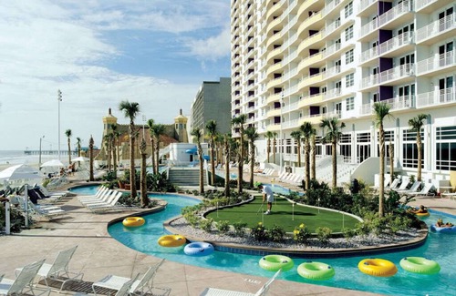 Hotel boasts of its own beach, lazy river, outdoor and indoor pool, kids pool, game room, arcade, mini-golf! Fun for the whole family! Room includes full kitchen with stove, microwave, dishwasher, plates, utensils, pots and pans and full sized refrigerator. Room also includes cable television, DVD, and Wifi. Welcome and Enjoy your stay!