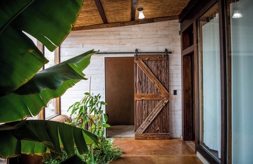This almost new earthship has one full bedroom and one lofted area. Both areas have queen mattresses. Master bedroom has a new latex-foam mattress. Updated wall color for brighter interior. New bedding for both sleeping quarters. Luxe finishes and furniture for your enjoyment!