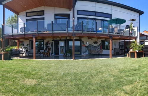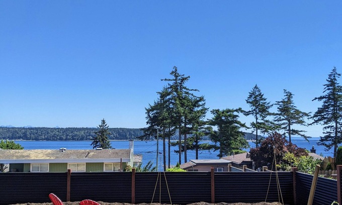 This cozy, island getaway awaits you in beautiful Campbell River at this modern, coastal suite. With 2 queen beds in 2 bedrooms and a lovely living room with a sofa bed, this space is perfect for an island retreat. Enjoy the convenience of amenities like AC, natural gas fireplace, washer and dryer, and high speed WiFi. The 600 sq foot covered patio is perfect in all weather conditions and is a perfect place to watch the sunrise with your coffee on the lounge set or eat your supper at the patio table and watch the cruise ships pass by. The outdoor activities will keep everyone entertained from bocci, croquet, bean bag toss, giant Jenga, or to simply tossing the ball around. The large back yard is the perfect place to relax and let the kids or dogs bounce around while you watch the marine traffic pass by.