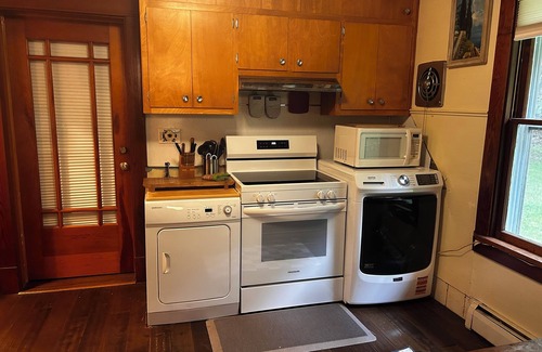 Original woodwork throughout the house and a retro (but fully functional) kitchen gives a cozy country feel, while the strong & reliable WiFi and flat screen tv w/ Roku gives you the ability to work and feel connected. The two airy spacious bedrooms each have a queen bed and one has a twin bed as well. The two and a quarter bathrooms have been updated and are stocked with all the basics.