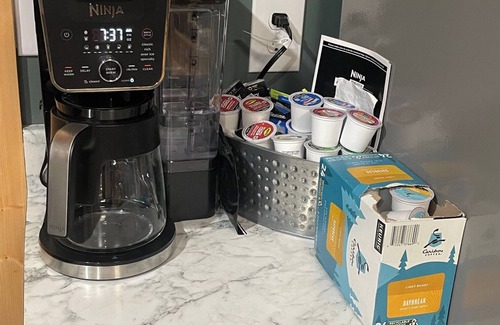 The fully equipped kitchen is a chef's dream, complete with modern appliances and everything you need to prepare delicious meals. Well-appointed with a full-sized refrigerator, stove, microwave, and other kitchen appliances perfect for making breakfast, lunch, or dinner throughout your stay! All pots, pans, glasses, plates, silverware, etc. are also there for you! Relax at the nearby dining area to share stories about the day's adventures.