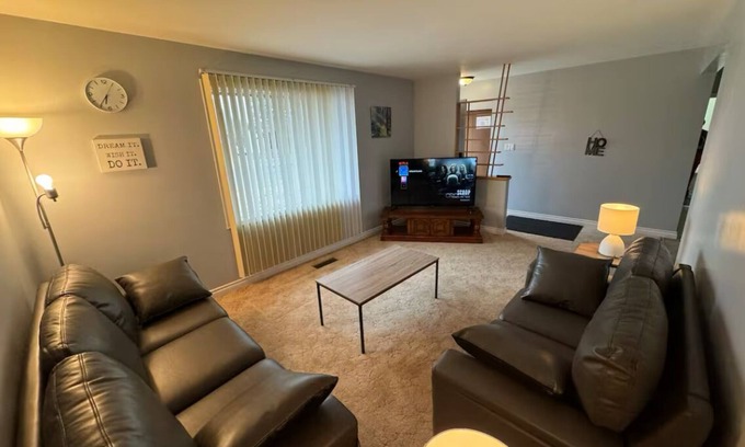 Cozy 3-bedroom Retreat with a touch of comfort and hospitality. Relax in this private, fully-equipped house with:3 bedrooms, AC, High-speed internet, Free parking, Basement with laundry, mini gym and pool table, and Living room with free Netflix and YouTube on smart TV. There is a CRIB and a HIGHCHAIR available for family with a kid. The sweet home is a 2-5 minutes walk to, Banks, Restaurants, Grocery stores and Major bus stops etc. House Rules: No smoking, No vaping, No marijuana/weed and No drug use in the house.