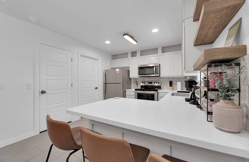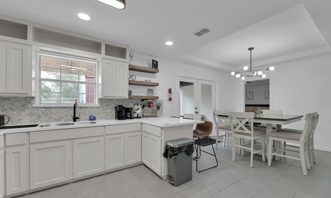 Welcome to Edinburg, TX! We are thrilled to have you here. Our property is thoughtfully designed with guests like you in mind. Drawing from our own experiences as both hosts and guests, we've created a space that embodies all the best aspects of a vacation rental. The living room features a spacious sectional sofa bed, perfect for lounging and watching TV with your group. The open-concept kitchen and dining area is ideal for hosting, allowing you to stay connected with family and friends while preparing meals. For added convenience, we offer a separate space that can serve as a TV room for children or an office for those who need to work remotely. The home includes a fenced backyard for privacy and a safe space for your pet, as well as a cozy patio with dim lighting and a charcoal grill for enjoyable evenings outdoors. When it’s time to rest, you can choose from five large beds: two queen-sized sofa beds, two queen beds, and one king in the master bedroom. Our high-quality mattresses ensure a restful night's sleep, so you can wake up refreshed and ready for the day ahead. We've crafted a calm, welcoming, and well-equipped environment for you. You'll experience this from the moment you arrive, starting with our seamless self-check-in process. Enjoy your stay!
