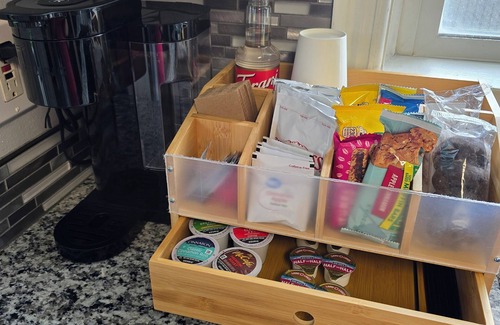 To make your stay more enjoyable, the home includes a smart TV with a quality sound system (so you can sign in to your favorite streaming services), a hair dryer with diffuser attachment, basic spices and cooking oil, an outdoor propane grill, and a convenient breakfast bar with a Keurig—great for coffee, tea, or hot chocolate.