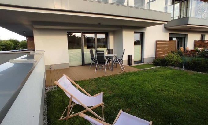 Cozy apartment (45m²) with garden & balcony, 50m from the beach is located in Dziwnow. Cozy apartment (45m²) with garden & balcony, 50m from the beach provides accommodation, featuring TV, Security/Safety, Bedding/Linens, among other amenities. This Apartment features TV, Security/Safety, Bedding/Linens, to make your stay a comfortable one.