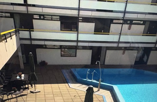 Yes, this Moehnesee apartment has a swimming pool. Check the Facility Overview section for details about the pool and other available facilities.