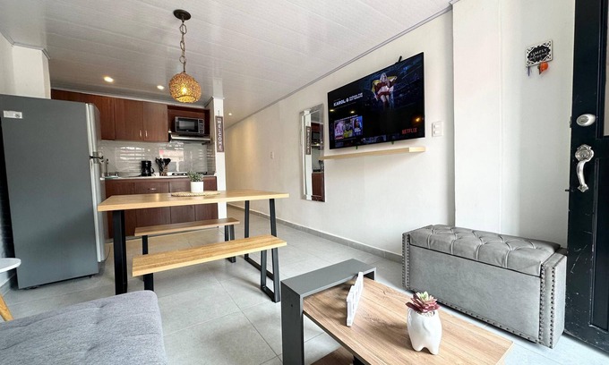 Enjoy a comfortable and pleasant stay in this cozy apartment located in a traditional and vibrant area of Pereira, just one block from the main avenue of the Cuba neighborhood. Only 8 minutes from the airport, the apartment offers a strategic location with easy access to public transportation, including a nearby Megabús station.