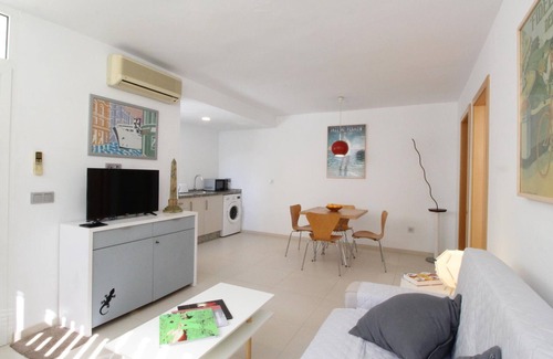 The Pina Beach Apartment has its own independent entrance, through an access corridor full of plants that will take you to a private terrace-patio, to enjoy more than 330 days of sunshine. The apartment is distributed in a living-dining room, with a sofa bed for a child, a kitchenette, a bathroom with a shower and a bedroom with a 160cm double bed.