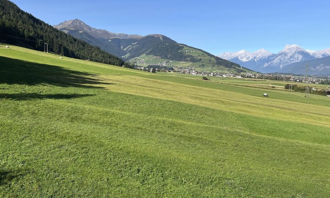 Cozy family apartment in the mountains. Amazing views, very close to Innsbruck and Axamer Lizum. The building has a swimming pool and sauna. Bus stop in front of the building. Two separate bed rooms and a living room with a view. The apartment is suitable for maximum 4 adults and two children ( open attic).