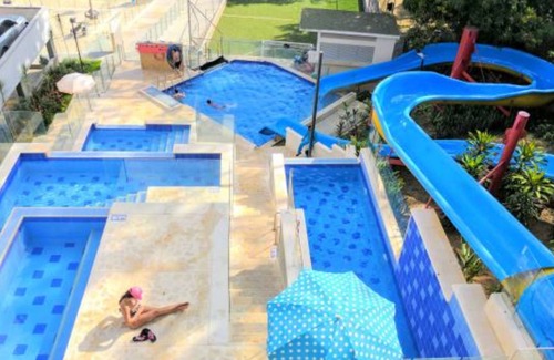 our cozy and contemporary apartment is located in Santa Fe de Antioquia 1 km from the main historical and cultural city. It has a beautiful view of the mountains from the apartment where you can enjoy the sunset. The apartment has 11 swimming pools, slides, adult and children area, miniature golf, steam room, sauna, beach volleyball, soccer court, gym, social room, ecological trail and reading area.