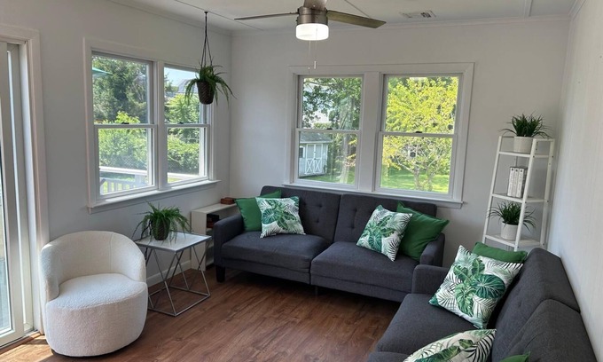 The place is beautiful even on rainy days. Nothing like sitting in the bright, airy living room with all the windows open during a warm summer rain shower. Perfect time for that rematch of Monopoly, or any of the board games you will find. Sorry, no cable or live TV. While Wi-Fi is set up, we encourage our guests to disconnect. Of course, you will still be able to watch movies on the flat screen mounted on the living room wall.