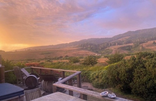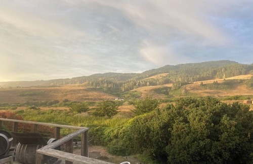 Get away from the crowds. Set back off the road but close to the beach. Great views all round with the ocean, mountains and meadows with cows quietly grazing. Come star gaze from the private hot tub on the back deck.
