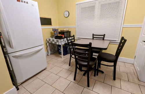Full Kitchen with Stove, Double sink, Dishes, Cutlery, kitchenware, small appliances, Microwave, Air Fryer, K-Cup Coffee Maker and Dining table.