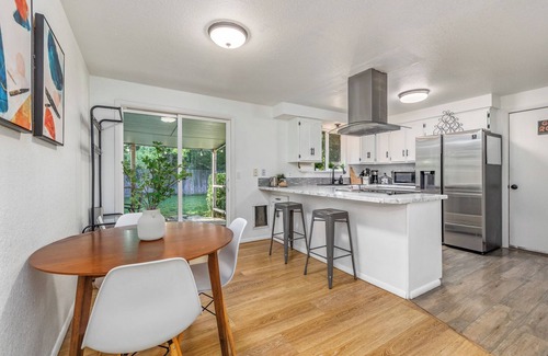 Discover Boise’s heart from this charming home, where convenience and comfort come together perfectly. Located just moments from the mall, dining, downtown, BSU, and BOI Airport, you'll have easy access to all that Boise has to offer. This home features three TVs, a spacious yard with a BBQ and fire pit, an updated kitchen with modern appliances, high-speed internet, and a washer/dryer for your convenience.