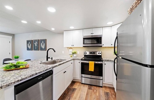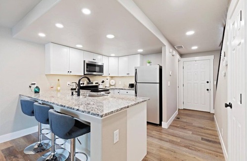 Welcome to our freshly remodeled 2-bedroom, 1.5-bath townhouse in the heart of Boise! Accommodating up to 4 guests, it’s perfect for families or business travelers. Enjoy a prime location near shopping, parks, and dining. Inside, modern interiors feature a cozy living area and a well-equipped kitchen. The master bedroom has a queen bed, while the second offers a twin bed with a pull-out trundle. With outdoor space to relax and easy access to Boise's attractions, your ideal getaway awaits! Security Notice: A Blink doorbell camera is installed at the front door for your safety. No indoor cameras.