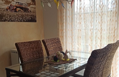The living room has TV via satellite, a DAB / Internet radio with CD system, a comfortable sofa / sofa bed (1.50 x 2.00) with a bed box, armchairs, wardrobes. The dining area has a dining table with 4 chairs.