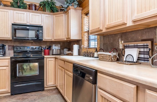 Keywords: 2BR/2BA, sleeps 6, log cabin, Branson vacation rental, luxury, rustic, single level, no steps, easy access, handicap accessible (with limitations: please ask questions as every person has different needs and expectations), FLAT screen digital TV w/cable, full-size fully equipped kitchen, all linens provided, gas log fireplace, charcoal BBQ grill, FREE wireless Internet, washer/dryer, conveniently located to shopping, restaurants, shows and entertainment for all ages, and plenty of off-street parking.
