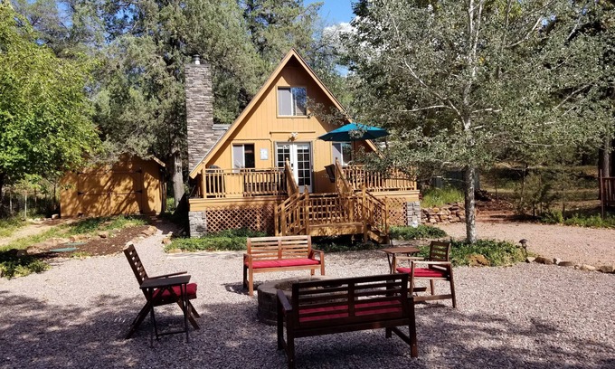 It is a fully Eco-friendly, LED lighted "green" home and is well maintained. Why would you want to camp or "Glamp" when you can stay at The Nut House and rest and relax. We even have a 4' diameter pave stone fire pit for burning real wood and roasting marshmallows (when the Tonto National Forest Payson Ranger District's fire restrictions are not in place! BYOW...Bring Your Own Wood).