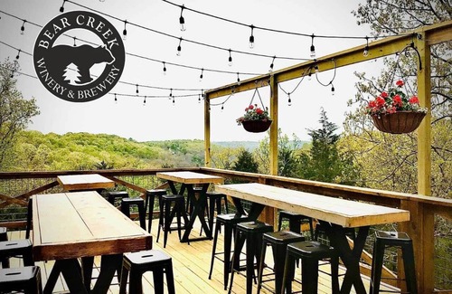 Nestled in the beautiful Ozark Mountains, just 10 min north of Branson Mo is the Pinecone Cabin at Bear Creek and Lodge Cabin Resort. The resort features an onsite winery and brewery; an outdoor pool; private hot tubs; complimentary breakfast and wireless internet. The resort winery/brewery has live music every weekend and serves rustic pizza and other small bites. Bear Creek is just minutes from all the fun of Branson MO; but also offers a secluded, cozy and relaxing atmosphere that allow guests to unwind after a full day of activities in the Branson area. Activity packages such as: horseback riding; skeet shooting; ziplining; in room massages and more are available as well. Meeting spaces for corporate or family reunions onsite.