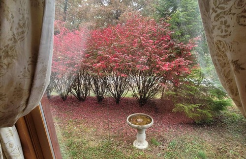 Welcome to this charming cabin in Columbus. This superb property features a cozy bedroom with a queen size sofa bed and blow up twin beds, perfect for a peaceful night's sleep. The living room offers a fantastic space to unwind after a day of exploring. With amenities like central heating and air, WiFi, washer/dryer, stationary bike, bicycle, great front porch to sit and watch all kinds of wildlife. We look forward to hosting you at our place. If you bring pets and occasionally need them walked or let out to do their business, please let us know in advance that you may be interested in our complimentary walking service.