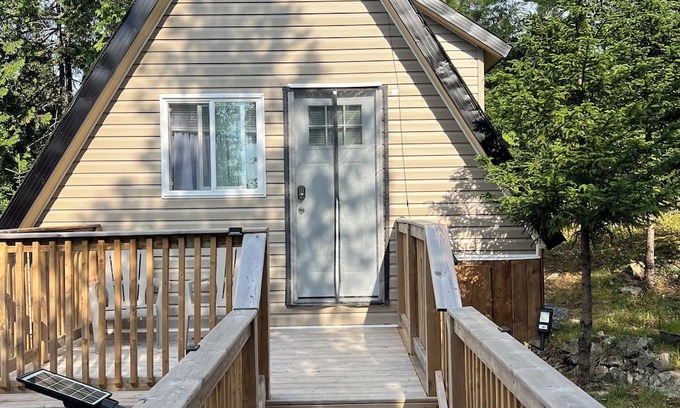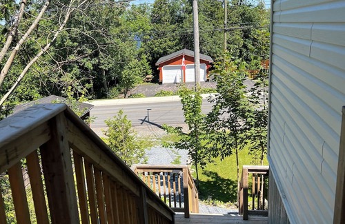Cozy Aframe cabin in Saint John with a fantastic view of the Saint John River. Includes a bedroom with a double bed, a loft with two twin beds, a bunk with a twin bed. Kitchenette with microwave, toaster, coffee maker and the essentials to prepare breakfast. Bathroom with toilet, shower, sink.An outdoor space for relaxation.