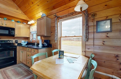 The knotty pine paneling and woodstove lend a cozy warmth to the space, and if you want to relax, watch some cable. After dinner, toss the laundry in the private washer/dryer, lounge on the front porch, and watch the sun dip behind the horizon.
