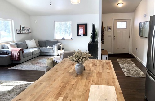 Nestled in the woods, you’ll fall in love with this cozy, quiet cabin. You and your friends or family will be biking distance to downtown Talkeetna, the lodge and local bakery, The Flying Squirrel.