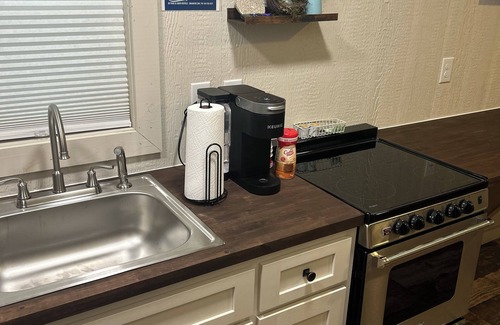 Enjoy the comforts of home with a fully equipped kitchenette that features a countertop, kitchen sink, oven and stovetop, microwave, refrigerator, and coffee maker—perfect for preparing meals during your stay. Kick back and unwind with the 42-inch smart TV, ready for streaming all your favorite shows.