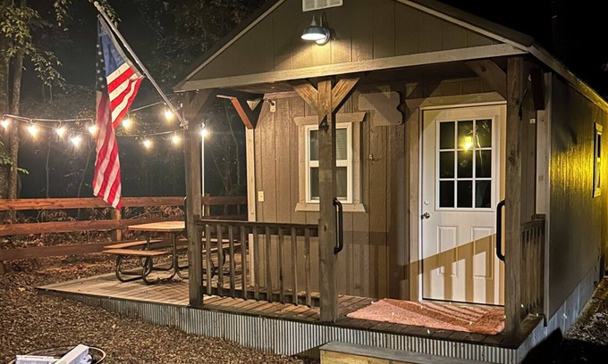 Escape to a charming retreat at Swanny RV Park & Cabin Rentals with the Robin Hood Cabin, a cozy getaway perfect for couples or small families. Located at Site 4, this inviting cabin comfortably sleeps 2 adults or 1 adult and up to 2 children, featuring a plush queen-sized bed to ensure restful nights.