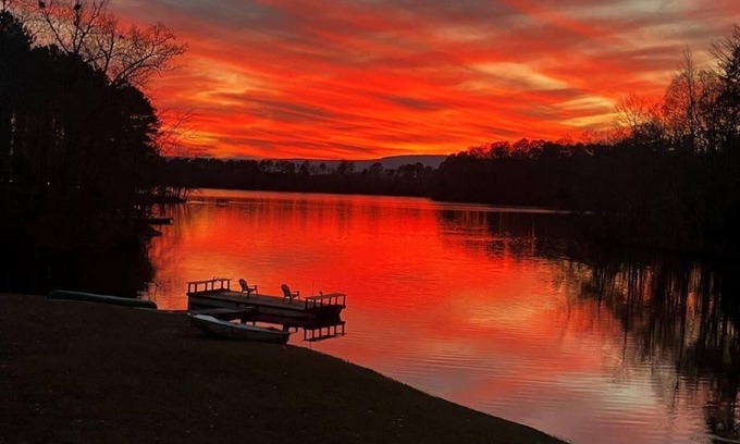 Take it easy at this unique and tranquil getaway. Enjoy the great outdoors, relaxing on the porch facing the lake or sit on the dock and watch some of the most incredible sunsets while sipping your favorite beverage. Supplied Kayaks and Canoe get you floating on the 320 acre lake where you can fish and swim. This little 700 square foot house sits on 8 private acres only with the main house next to it. We supply bicycles and outdoor games for you to enjoy. The indoor gas fire place keeps you warm