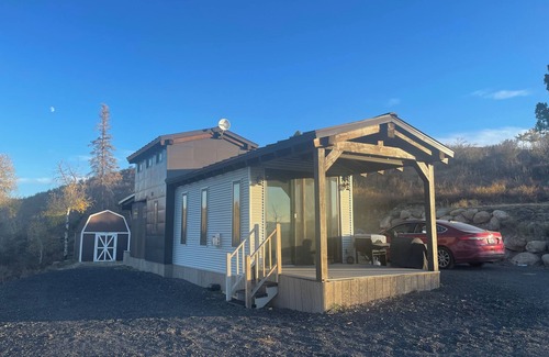Discover this lovely 2-bedroom gem on the outskirts of Park City. This charming cabin features 1 king bed and 1 full bed, perfect for a cozy retreat. With a spacious living room and a convenient murphy bed, guests can relax and recharge after a day of exploring. Enjoy the modern amenities like WiFi, AC, and a washing machine, making your stay comfortable and stress-free. It's easy to see why you'll be able to unwind at our place. Optional car rental provided on location upon request