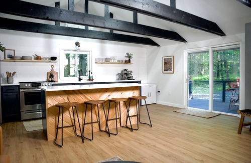 This property offers the perfect blend of comfort, convenience, and natural beauty, allowing you to immerse yourself in the serene ambiance of the mountains. Our cabin is thoughtfully designed to provide a warm and inviting space for guests. The interior features modern but warm decor, creating a cozy and welcoming ambiance. Take a dip in the hot tub or unwind in the barrel sauna surrounded by tranquility. Into kayaking and walking trail? Here you are 3 minutes away from gorgeous views and trails at the Promised Land State Park that offers boat rentals, trails and a beach! You're in for a treat!