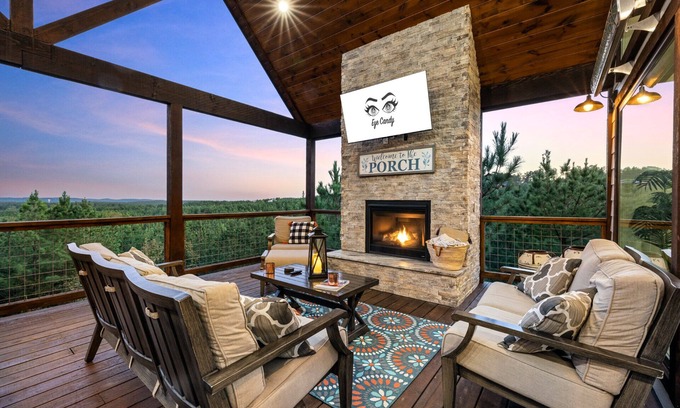 Welcome to Eye Candy, a luxurious pet-friendly cabin designed with your family’s fun, comfort, and relaxation in mind. Step inside to be greeted by breathtaking mountain views that immediately draw you toward the 1,100 sq. ft. deck. This stunning deck is the centerpiece of the cabin—an eye-catching space where guests spend countless hours relaxing, dining, and taking in the incredible scenery. Whether you’re enjoying a morning coffee or stargazing in the evening, this deck is where memories are made.