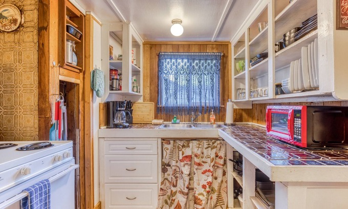 This secluded cabin lies on the edge of 300 miles of woods, perfect for peaceful getaways. The historic Pacific Crest Trail is right outside your door, while a full kitchen and backyard await at home.