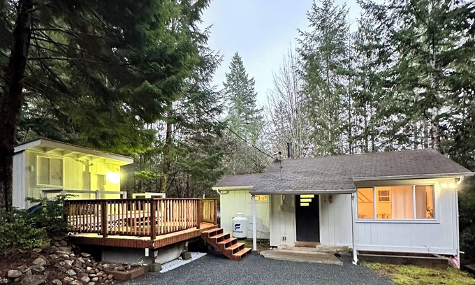 Located in Brinnon, this cabin is a dream. With a cozy bedroom featuring a king bed, a bathroom equipped with a shower and hair dryer, and essential amenities like WiFi and heating, guests will have a terrific and peaceful retreat. Whether you're looking to unwind in nature or explore the surroundings, this cabin offers a tremendous experience. Relax in the hot tub, have a campfire with snores, visit the beautiful Rocky Brook Falls, go to the beach, or just relax. We hope you'll enjoy your stay at our cabin.