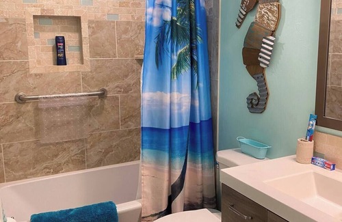 We tried to think of everything when we built these little cabins. These are a great size for one or two people. It has a full size bedroom with King size bed, full bathroom, complete laundry room, fully stocked kitchen and spacious living room. It's decorated in a light fun beach/ coastal decor. It's just a happy place for you to relax and enjoy while you're here working or visiting friends.