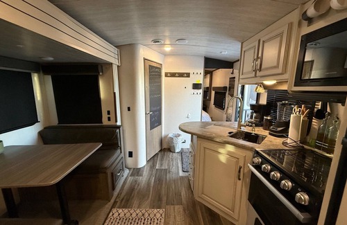 Our cozy travel trailer is the ultimate glamping experience, giving you the charm of camping with all the comforts of home—right in the heart of the city.