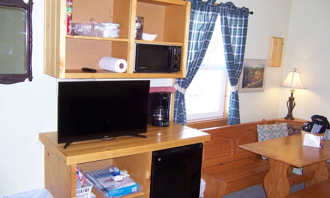 Furnished with a double bed, beautiful fold out couch, SMART TV, microwave, coffee maker, refrigerator, air conditioning and gas heat. Enjoy a dining table that can double as a work space for your laptop. GREAT WIFI with extender in the room. Bathroom facilities are located in our luxurious ADA compliant bath house, featuring wall-to-wall tiled showers, and clean, well-lit individual private spaces.