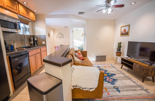Stay in this historic bungalow and live like a true local in Tucson! We're within walking distance to restaurants, coffee shops and the U of A. Saguaro National Park, historic 4th Ave. & Downtown are all a close drive away. Our casita features 2 bedrooms, and a private patio, kitchen, and a comfy living room to relax in after a day of sightseeing. Wi-Fi, A Smart TV, free off street & covered parking -- we've got everything you need!
