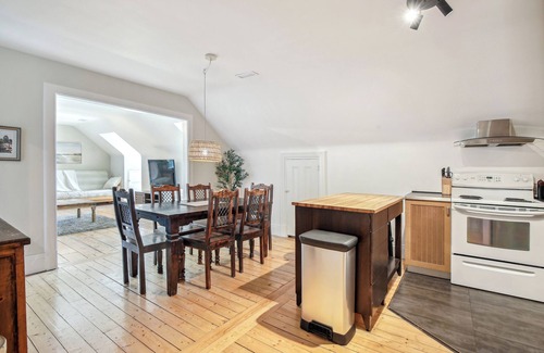 This splendid 9-room apartment is the top/1st floor of our spectacular, 1814 house. It includes 4 luxury bedrooms, each providing both a fancy decor and the highest comfort (with superior quality bedding), with private bathrooms that include all amenities, even bathrobes. The apartment also comprises a spacious and comfy living room (also with a queen-size futon), a warm dining room and a fully-equipped kitchen, with coffee (expresso, american, italian) and basics for breakfast and cooking. Every detail has been carefully thought through to make your stay an enchanting and unforgettable experience.