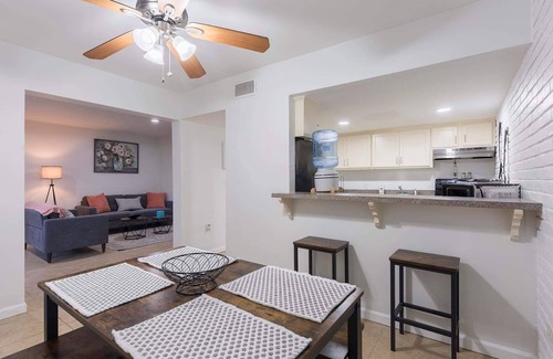 This cozy 2-bedroom retreat in Edinburg is perfect for professionals, students, or anyone needing to stay near UTRGV, the courthouse, or local hospitals. Enjoy fast WiFi, a fully equipped kitchen, in-unit laundry, and private parking — all in a quiet, safe neighborhood just minutes from restaurants, shops, and campus.
