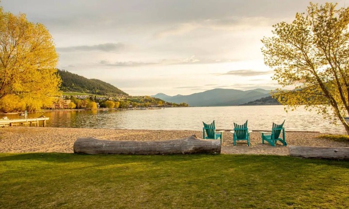 Welcome to our Resort Condo along the shores of Okanagan Lake, designed with all new high-end modern furnishings and appliances. Our unit is easy access ground level with a patio facing the beautiful predator ridge mountains with gate access to walk just steps to the lake. Resort-style amenities are yours to enjoy including a king size bed, outdoor swimming pool, pickleball courts, gym and two access points to Lakeshore Road Beach directly across the street. A designated outdoor parking stall is included just for you.