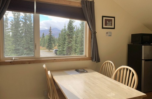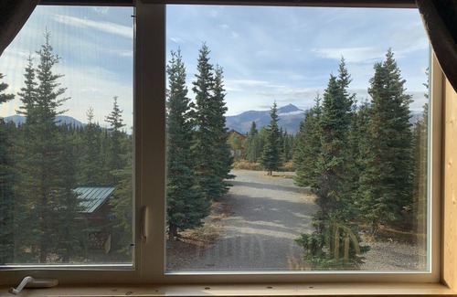 Stay in comfort in the cozy Wolf Den with an amazing view of Mount Healy in Denali National Park. Den includes a kitchenette and private bathroom with shower. The property is located at the end of a road in a quiet neighborhood on just over 2 acres.