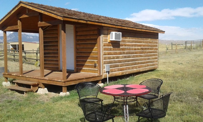 Cozy one room cabin with a wonderful view of the Big Horn Mountains.
