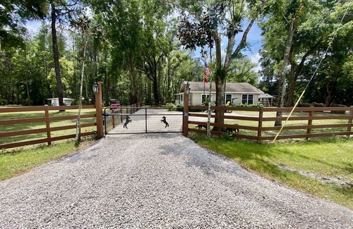 Fully remodeled and furnished in 2022 2BR/2BA early 1900's Florida "Cracker Shack." Surrounded by towering oaks, cypress trees, and an on-property paddleboard/kayak launch leading to Lake Wastena. Private gated entrance with separate parking for guests leads to a recently built wraparound porch equipped with a grill, Edison lights and outdoor furniture. Fully furnished kitchen, living room, and bedrooms. Fenced yard for pets and three friendly horses on property that LOVE treats, fenced separately.