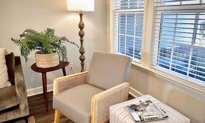Come relax in this quiet, cozy cottage with tons of stylish upgrades. This 3 bed 2 bath home features a spacious living area that opens into the kitchen with a huge island that leads out onto a screened in porch. In addition to the 3 bedrooms, the home is also equipped with a queen size air mattress. The master suite is spacious with a master bath that has a soaker tub, tile shower, & dual vanities. A split floor plan makes for lots of privacy also. Guests enjoy a 30-acre lake and playground.