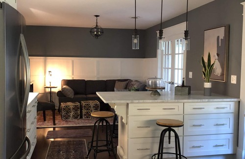 Newly renovated 3 bedroom, 2.5 bath home. Sleeps 8, master bedroom with full bath on suite. Central air, radiant floor heat in bathrooms, new kitchen. All amenities conveniently located on one level. Located in the village of Cornwall on Hudson. Hiking trails, restaurants, Hudson river kayaking, Storm King Art Center, West Point Military Academy all within minutes of this charming village home.